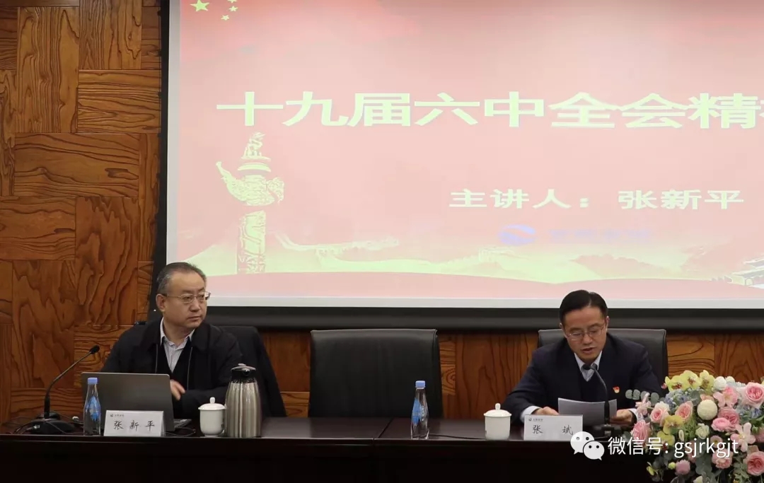为深入学习贯彻党的十九届六中全会精神, 11月30日上午,甘肃金控集团邀请兰州大学马克思主义学院张新平教授,举办十九届六中全会精神专题辅导讲座。集团党委书记、董事长祁建邦及在家班子成员参加讲座。集团党委副书记、工会主席张斌主持并讲话。