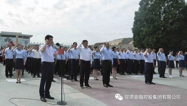 全体党员在甘肃金控集团党委副书记、总经理雷铁的带领下,敬献花篮、鞠躬致敬,面对鲜红的党旗庄严宣誓,重温入党誓词:我志愿加入中国共产党,拥护党的纲领,遵守党的章程,履行党员义务,执行党的决定,严守党的纪律,保守党的秘密,对党忠诚,积极工作,为共产主义奋斗终身,随时准备为党和人民牺牲一切,永不叛党。