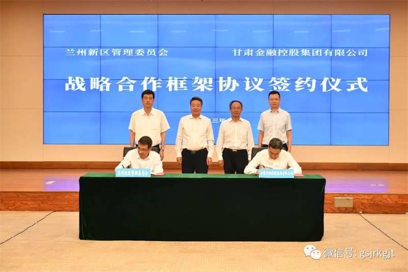 7月28日,甘肃金控集团与兰州新区管委会签订战略合作框架协议。集团党委书记、董事长,华龙证券党委书记、董事长祁建邦出席并见证签约。兰州市委常委、新区党工委书记杨建忠,新区党工委副书记、管委会主任李东新,集团党委委员、副总经理龙飞出席签约仪式。集团党委委员、副总经理赵星军、新区党工委副书记张爱胜分别代表双方签约。新区管委会副主任杨军主持签约仪式。