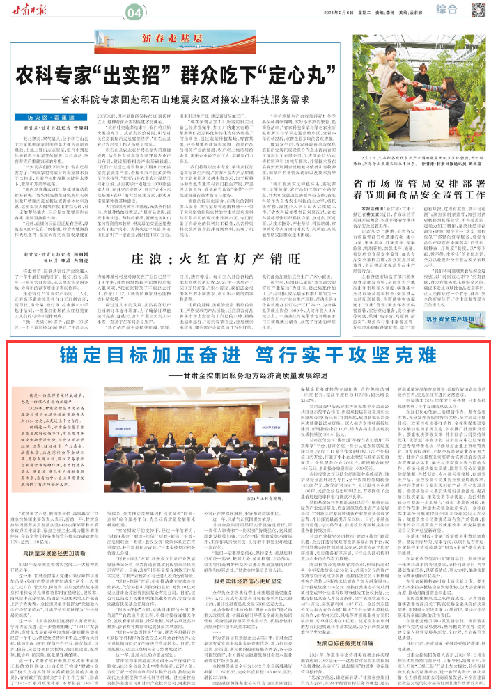 围绕落实2024年年度目标任务,甘肃金控集团明确了6个方面的重点工作: