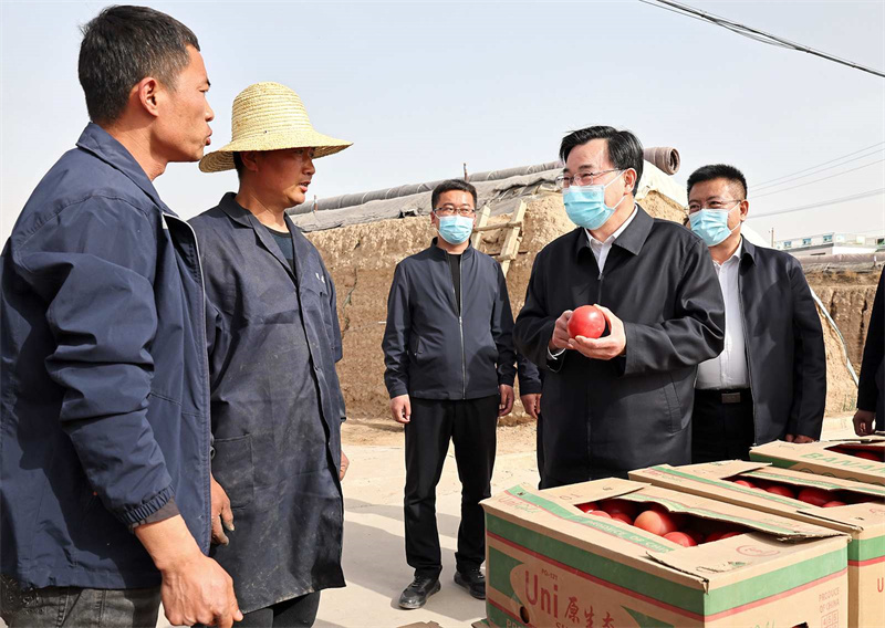 在白银区武川乡红岘村、靖远县东湾现代农业产业园,胡昌升走进田间地头、蔬菜大棚,与正在劳作的群众亲切交流,详细询问春耕生产、乡村振兴等情况。他强调,要做好农资农机服务保障,加强农业技术指导,全力抓好春耕生产。要善于挖掘和利用本地优势资源发展特色富民产业,培育壮大新型农业经营主体,提升组织化集约化水平,促进农业增产增效、农民增收致富。要落实五级书记抓乡村振兴要求,发挥好基层党组织和党员干部作用,更好组织群众、宣传群众、凝聚群众、服务群众,紧紧围绕促进农民增收这个中心任务,把党组织建在产业链上,把党员聚在产业链上,让群众富在产业链上,把党的组织优势转化为加快乡村发展的实际成效。