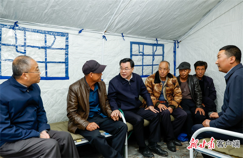 10月1日,省委书记、省人大常委会主任胡昌升深入定西市漳县、陇西县和天水市武山县,看望慰问陇西地震受灾群众,调研指导灾后恢复重建工作。(记者孟捷)