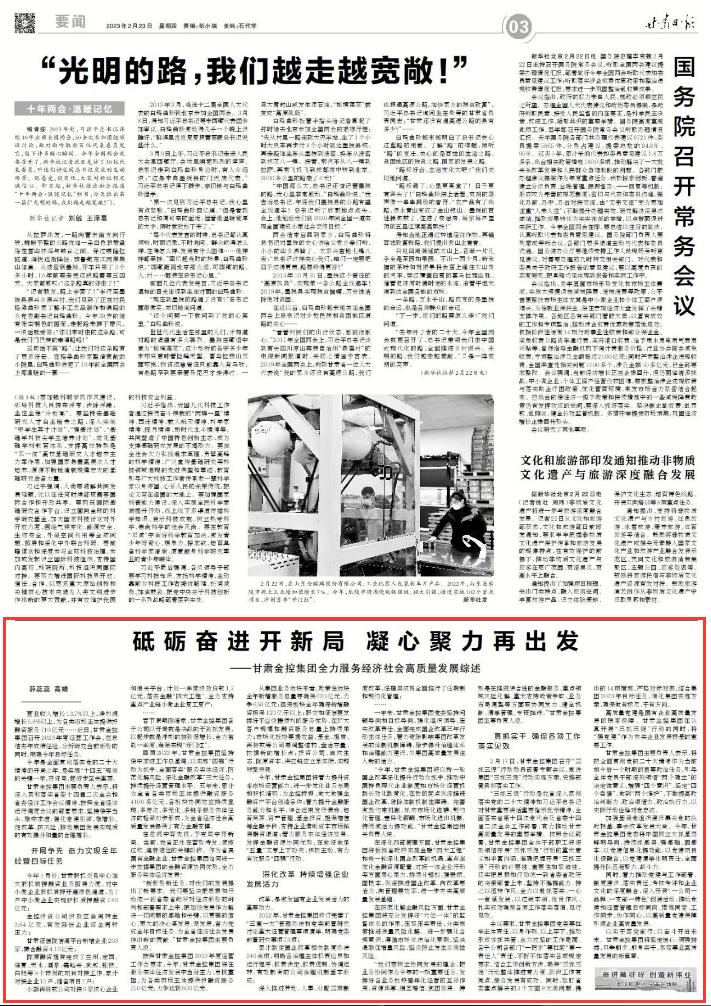 以实干笃定前行,以奋斗开启未来。甘肃金控集团将坚定信心、顽强拼搏,只争朝夕、躬身实干,书写事业高质量发展的新篇章。