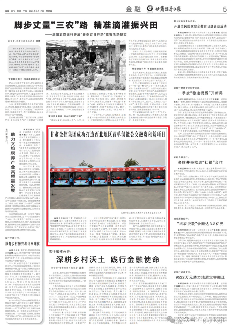 媒体关注 | 甘肃金控集团成功打造西北地区首单氢能公交融资租赁项目