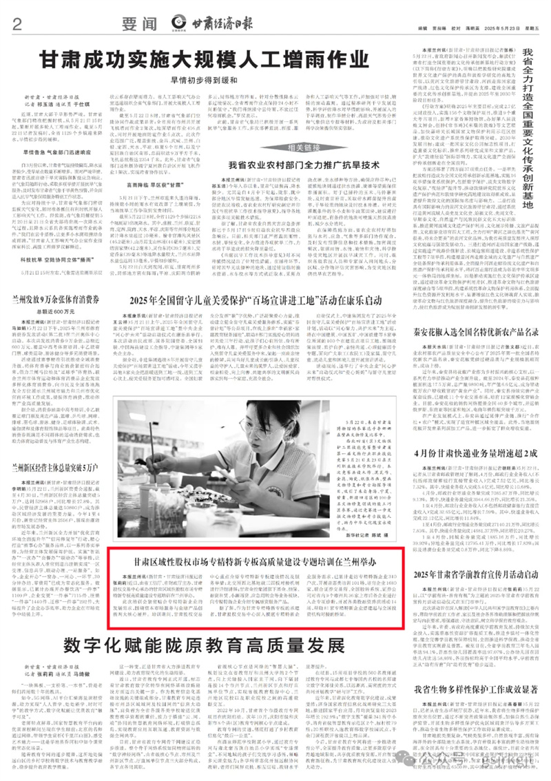 媒体关注 | 甘肃区域性股权市场专精特新专板高质量建设专题培训在兰州举办