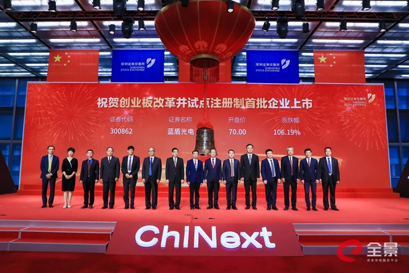 2020年8月24日,华龙证券保荐与主承销的安徽蓝盾光电子股份有限公司(股票代码:300862,股票简称:蓝盾光电)在深圳证券交易所创业板成功挂牌上市,成为注册制下创业板首批18家挂牌企业之一。中共中央政治局委员、国务院副总理刘鹤发表书面致辞,中共中央政治局委员、广东省委书记李希,中国证监会主席易会满出席上市仪式并致辞,广东省省长马兴瑞,深圳市委书记王伟中出席上市仪式。全国人大财经委、全国人大常委会法工委、最高人民法院、国家发改委、科技部、工信部、商务部、国资委等单位有关负责同志出席上市仪式。甘肃金控集团党委书记、董事长,华龙证券党委书记、董事长陈牧原作为蓝盾光电保荐机构代表出席了挂牌仪式。蓝盾光电子前身是成立于2001年的铜陵蓝盾光电子有限公司,于2005年整体变更设立为股份有限公司,是国内智能交通行业领先的产品供应商和系统集成商。公司主营高端分析测量仪器制造、软件开发、系统集成及工程、运维服务、数据服务和军工雷达部件,产品和服务主要应用于环境监测、交通管理、气象观测和军工雷达等领域。客户主要为全国环境监测、公安、交通、气象等政府部门、企业及科研单位和部队等。公司在光学、电子及信息技术、精密机械制造等领域积累了五十余年的科研和生产经验,是我国仪器仪表行业内具有较强自主创新能力的成长型创新创业企业。蓝盾光电子本次IPO公开发行股票3,297万股,发行价格为33.95元/股,募集资金总额约为11.19亿元。本次募集资金投资项目聚焦于公司近年增长速度较快的环境监测领域。募投项目的实施,将进一步提升公司研发实力、提升公司生态环境监测全产业链综合服务能力、加快公司承担的国家重大科研专项的产业化进程,有利于公司抢抓环境监测公共服务供给模式改变而带来的市场机遇,巩固公司环境监测运维市场行业地位?;と缎型哦右谰荻嗄晟罡时臼谐』鄢恋硐吕吹姆岣痪?,通过深入调研和专业高效的尽职调查工作,为蓝盾光电子量身打造了上市方案。从首次申报到历次反馈、再到顺利过会,华龙证券与蓝盾光电子建立了互信共赢的伙伴关系,并助力蓝盾光电子驶入资本快车道,借助资本市场的优质资源配置能力进一步快速、健康、可持续发展,做大做强!华龙证券北京分公司(投资银行)已在北京、上海、深圳、杭州、兰州、安徽等地区设立了业务分部,项目遍及全国。投资银行团队业务经验丰富、职业操守良好、工作规范严谨、进取精神强烈。经过二十年的磨砺,华龙证券投资银行业务取得了长足的发展:专业队伍不断壮大,专业技术和专业经验不断积累,专业化的服务水平不断提高,在很多细分领域和细分行业华龙现已走到市场前沿,证券研发、营销、创新等综合实力不断提升,公司已经具备大型股票、债券发行项目运作的实力和经验,并和一批国际性企业龙头建立了长期的战略合作关系?;と贾毡锌突Ъ壑底畲蠡庖环⒄棺谥?,致力于为客户提供专业化、精准化、多元化的服务。“以您为本,成人达己”,华龙证券愿与您携手同行,共创伟业。