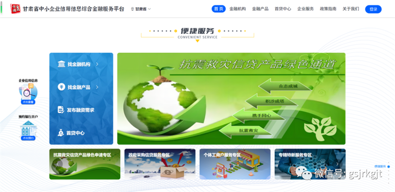 甘肃征信认真学习贯彻习近平总书记关于抗震救灾重要指示批示精神,坚决贯彻落实党中央、国务院决策部署和省委省政府部署安排,按照甘肃金控集团工作要求,积极发挥“陇信通”平台金融基础设施作用,利用“陇信通”平台线上融资对接功能,开辟抗震救灾信贷产品绿色申请专区,已上线36款信贷产品,加快响应速度、缩短融资时间、提高融资效率,全力以赴做好征信服务工作,在抗震救灾中体现金控大爱、征信担当,贡献金融力量。