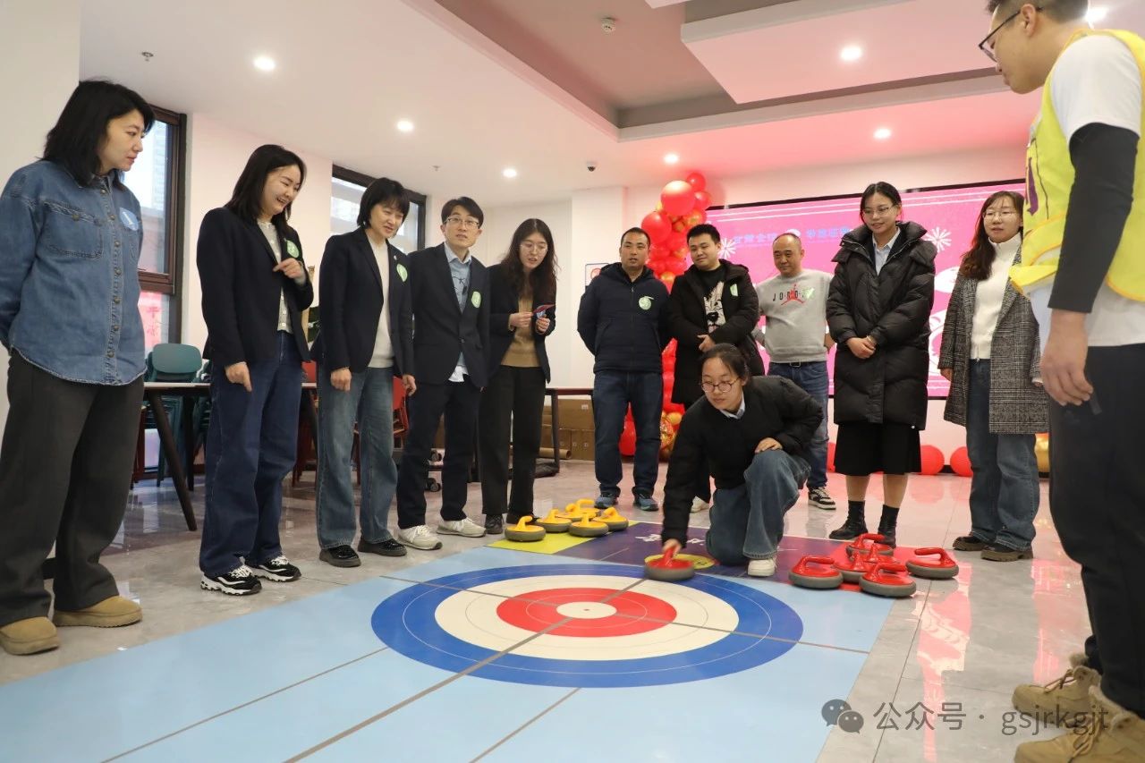 随着铿锵有力的锣鼓声,两只威武灵动的“祥瑞金狮”跃入会场,拉开活动序幕,在舞狮队员辗转腾挪间,集团公司领导执笔点睛,寓意新年开新局。随后开展的“古韵新潮”游戏区人声鼎沸,投壶游戏中的“上上签”破空声与欢呼声此起彼伏,“射箭”靶场选手凝神静气“百步穿杨”,“钓鱼”现场锦鳞翻飞笑闹如潮,套圈环节精准抛掷欢呼雀跃,冰壶赛道上更是上演“智谋对决”,团队协作的默契充分展现。现场气氛热烈,欢笑与掌声交织出欢乐的海洋。