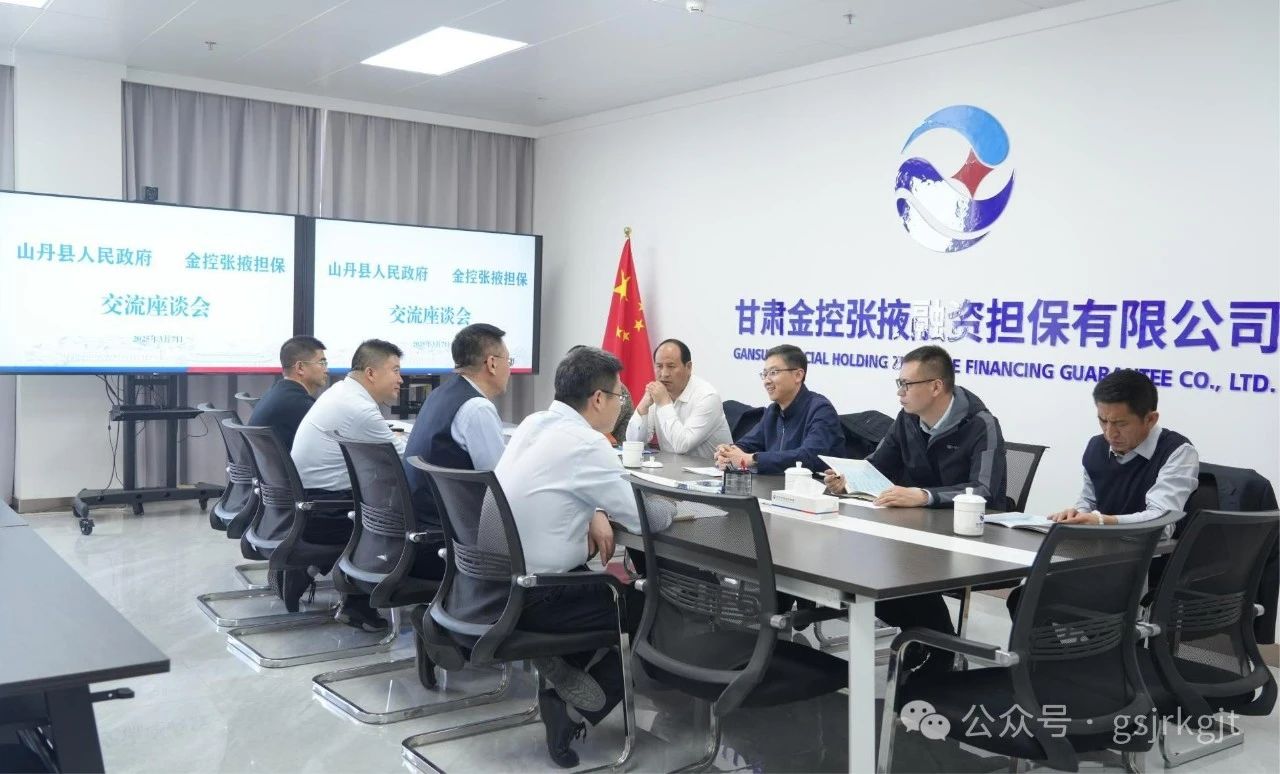 近日,山丹县委常委、常务副县长郭强一行到访金控张掖担保,双方围绕深化政银企合作、助力县域经济高质量发展开展座谈交流。金控张掖担保班子及相关业务部门负责人参加座谈。